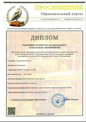 Диплом победителя I место |