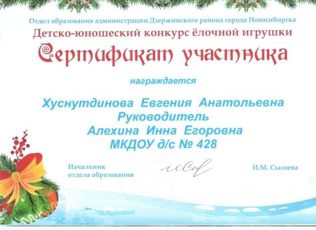 Сертификат участника районного конкурса елочной игрушки |