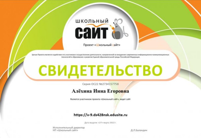 Сертификат участника проекта «Школьный сайт» |