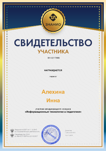 Свидетельство участника международного конкурса "Информационные технологии в педагогике" |