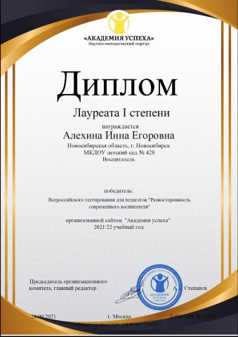 Диплом I степени |