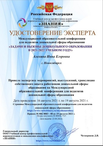 Удостоверение эксперта международной образовательной конференции